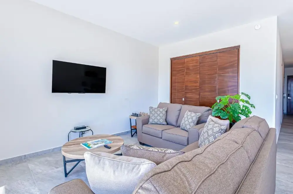 Wifi y la televisión no funcionaron todas nuestras 12 días de estancia, el agente vino a resolver esto, pero sin resultados. Ella dijo que el cable óptico se rompe fuera de la casa, pero no creo mucho porque en otros pisos funcionó ... nos ofreció mudarnos a un apto o un poco de descuento, pero vamos a este piso y podría ser justo informarnos antes de llegar ... El lugar está cerca de la carretera principal y se están construyendo muchos edificios nuevos, por eso es bastante ruidoso. El baño y la ducha en el dormitorio principal están abiertos, no hay puertas, sin cortes